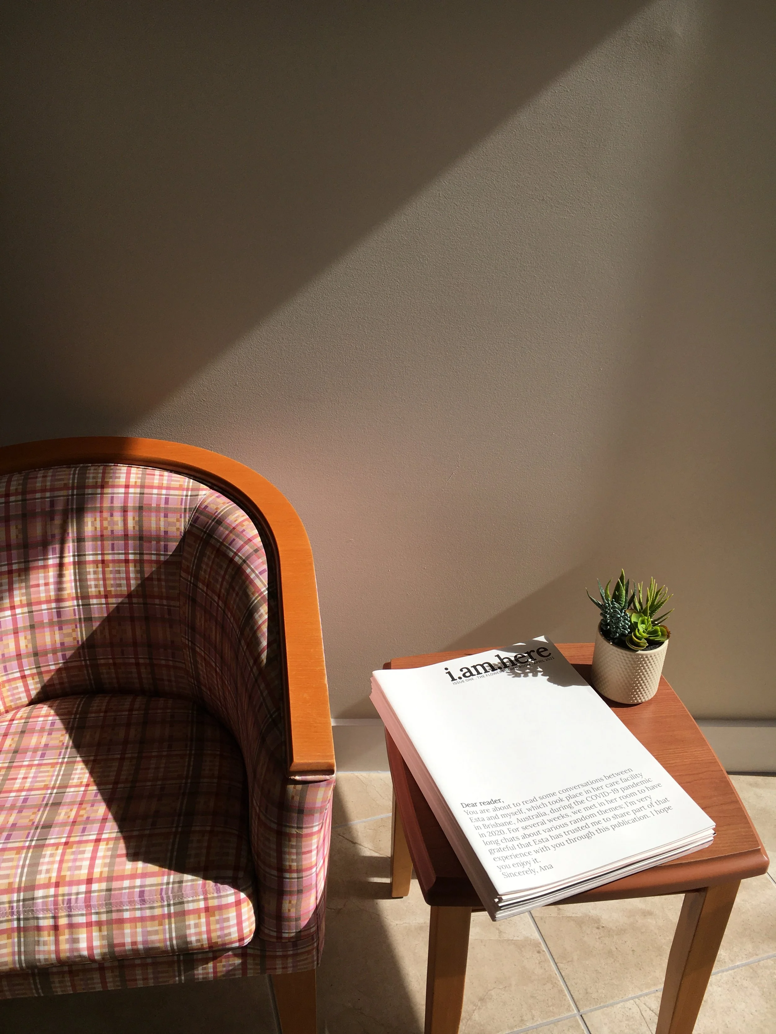 Issue One. The Flowers in Her Room features conversations between Esta Ziviani and myself, which took place in Esta’s care facility in Brisbane during COVID-19 pandemic in 2020. Film by Nikolas Strugar / Ravens At Odds www.ravensatodds.com